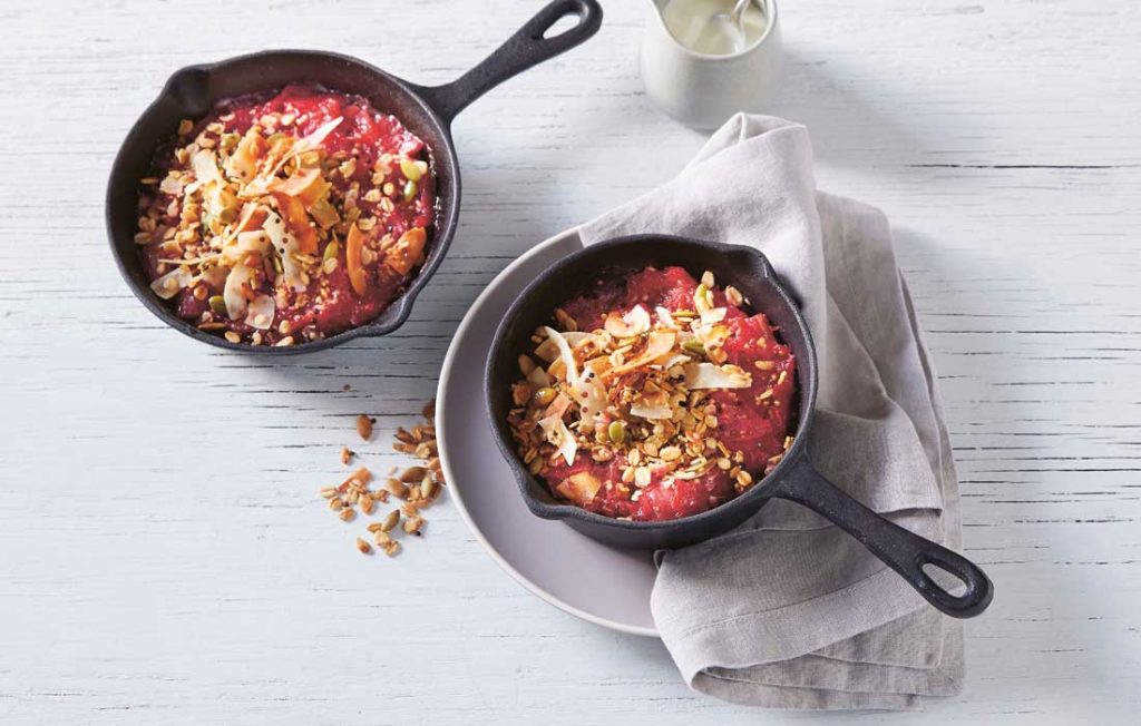 Apple crumble is such an easy crowd-pleasing treat. This low-calorie, high-fibre version has the additional tartness of rhubarb to perfectly complement the sweet apple and crumble.
